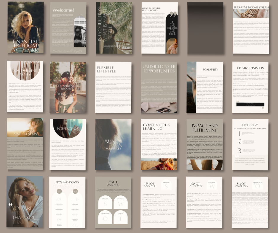 Boost your digital marketing efforts and educate your audience with our "How To: Achieve Financial Freedom with MRR" Lead Magnet Template! This simple, yet powerful, template is designed to help your followers understand the fundamentals of digital marketing, online business, and Master Resell Rights (MRR). Fully editable in Canva, it’s perfect for tailoring to your brand and message. 📚🚀